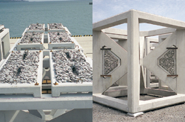 天然再生資源である貝殻と、ポーラスコンクリートの技術を融合させた新しい多孔質増殖素材です。